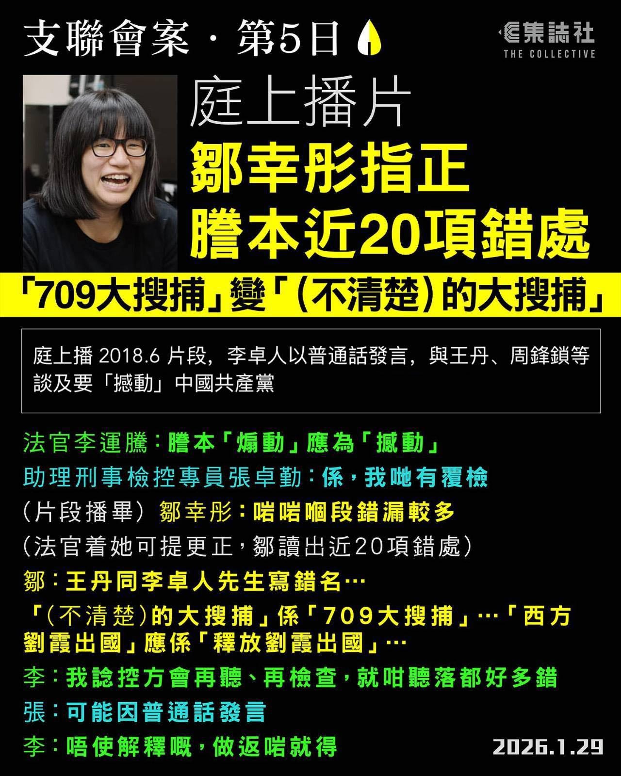 支聯會案.第 5 日|庭上播片 鄒幸彤指正謄本近 20 項錯處 「709 大搜捕」變「(不清楚) 的大搜捕)