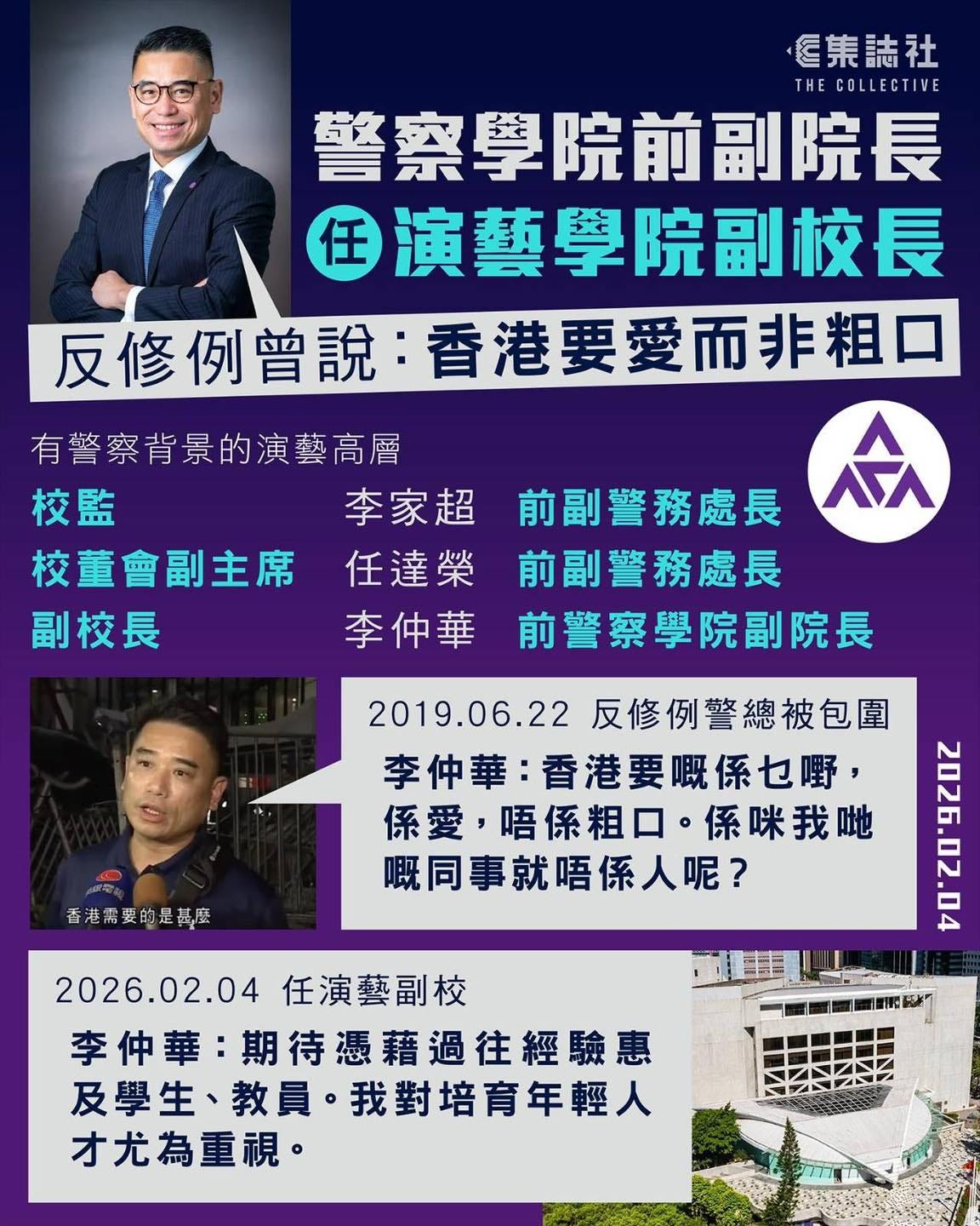 警察學院前副院長 任演藝學院副校長 反修例曾說:香港要愛而非粗口