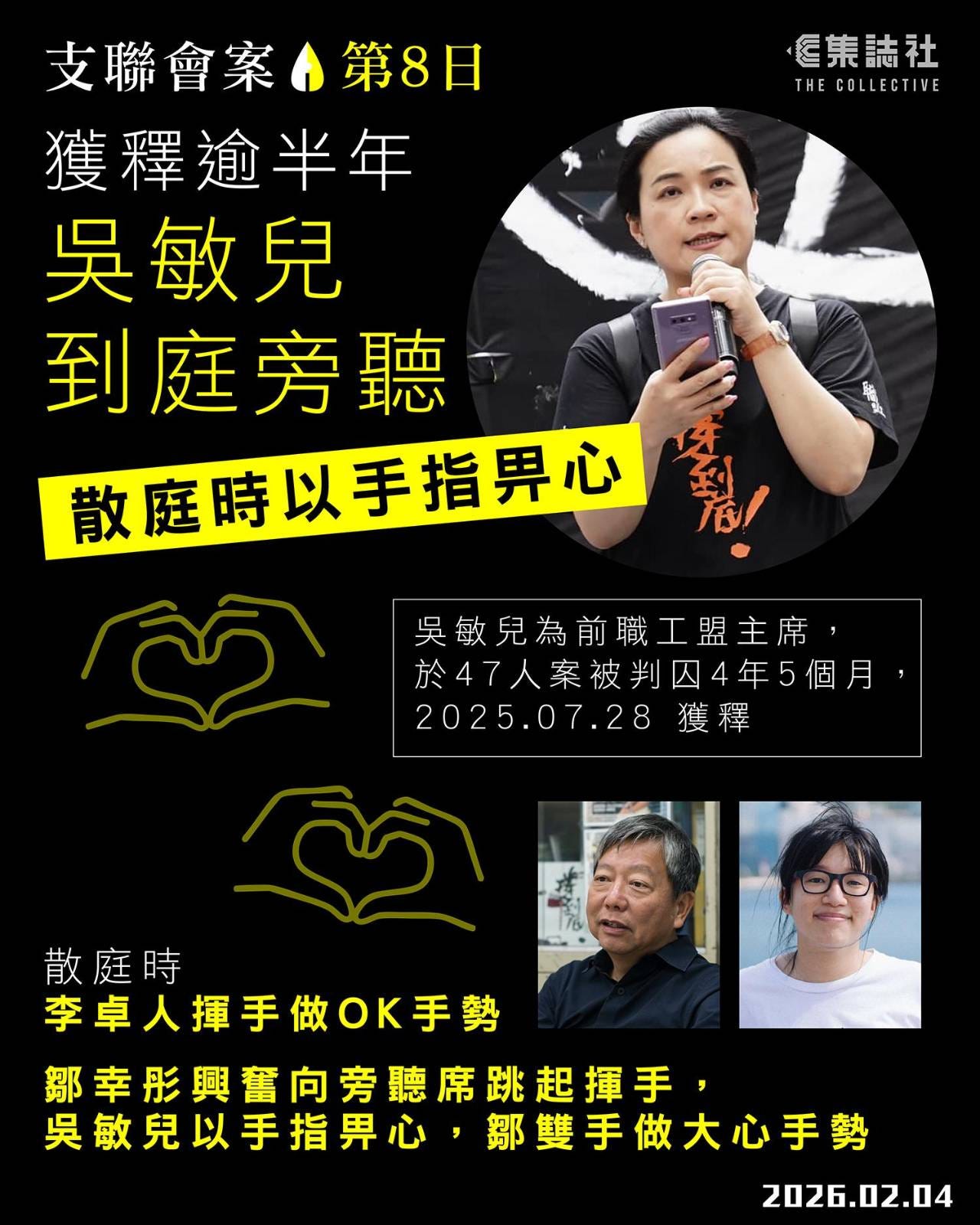 支聯會案.第 8 日|47人案獲釋吳敏兒到庭旁聽 辯方傳召發反對六四集會通知書警司盤問